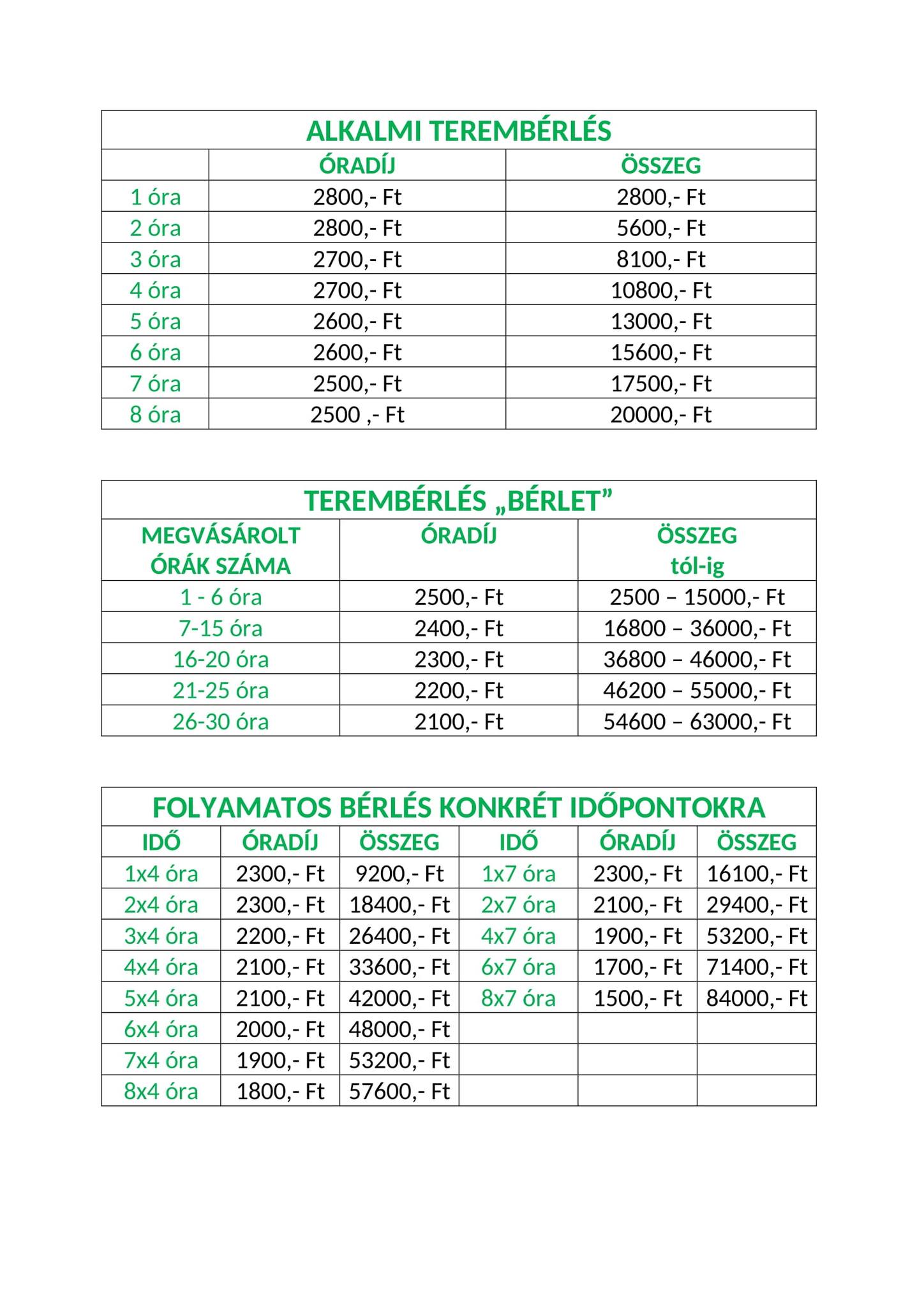 Bérlési lehetőségek – FELTÉTELEK ÉS ÁRAK